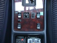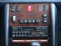 左上から、リア熱線スイッチ、内気循環スイッチ、ハザードランプスイッチ、後席室内灯スイッチです。 中段は空調スイッチです。エアコンはオートエアコンです。87年式は左右独立で温度調節できるタイプではありません。 下段のオーディオはパナソニックでリモコンまでついていますが、何が何やら分からないくらいゴチャゴチャしたスイッチ配列です。