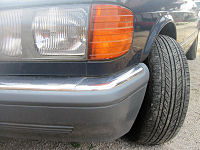 ホイールベースが3mぐらいの長いロングボディのくせして、びっくりするぐらい小回りが利くんですね。 前輪にキツクついたネガティブ・キャンバーのせいでしょうか? ハンドルを一杯に切った状態だと、内側の前輪はとんでもなく傾いて曲がっています。 曲がるのは、何も低速の時だけではありません。 普通だと、フロントのグリップが抜けて、真っ直ぐガードレールに突き刺さる様なシチュエーションでも、「あっ! マズイ……」と感じた瞬間、グワっと曲がっていきます。 フロントのグリップが抜ける前に、リアのグリップの方が先に抜けてくれるんですね。 ま、ドライバーはメルセデスを信じて、ハンドルを切れば良いわけです。あとは、メルセデスが何とかしてくれます。 メルセデスは、こんな芸当を電子制御に頼らずこなしてしまうんですね。サスジオメトリーが良いのでしょうか? こんなに良いジオメトリーなら、日本のメーカーがすぐにでも真似をしそうなものですが、とあるお人のお話によると、 確かに、タイヤローテーションをサボると、前輪の編磨耗は凄まじい物があります。私のだけかな? と思ったら、他のメルセデス全てで言える様です。 「コーナリング・スタビリティ」か「タイヤの編磨耗(をさせない)」のどちらかを選択しなければならない時、メルセデスは迷わず「スタビリティ」を選択し、その他のメーカーは選択できなかっただけなんですが、こんな所からも、メーカーのスピリットが伺えるエピソードだと思います。(でも、編磨耗しないにこした事はない…… ユーザーの身勝手!?) |