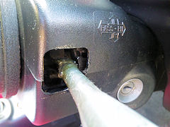 十分に気をつけていたつもりだったのですが、とうとうやってしまいました。 ズボンの裾にウィンカーレバーを引っ掛けて、パキリと…… 完全に折れた訳ではなく、外側の筒状の部分が根元で折れ、その中の棒は何とか残っています。 ですから、デリケートに操作すれば、なんとか使える状態です。 とは言え、このままでは、いつ折れてもおかしくありませんし、レバーも色褪せてとても見苦しいので、思い切って交換することにしました。 ところが、交換の見積もりを貰ってビックリ! 工賃込みで3万円弱のお値段です。 急遽、予定変更、折れた筒を無理やり強力接着剤で固定して、様子を見ることにしました。 接着して、1週間程度が経過しましたが、今のところ、何とか均衡を保っています。 この後、どうなることやら…… |