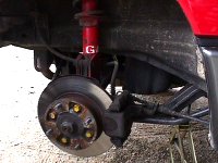 実は、ダンパーの設定は、前:2、後:4の時が、「リアの張り出し感」のバランスが素晴らしく良い(私の好みな)のですが、コーナリング途中でギャップを拾うと、フロントが踊る感じがするので、前:3で乗っています。ひょっとしたらコイルはノーマルでも良いかもしれません(とは書いたものの、多分、軟らかすぎるだろうなぁ……)。 あと、こんなにお金をかけなくても、リアのトーションバーを太くしてみる(パーツがあるかどうかは未確認です)のも、お手軽で良いかもしれませんね(これは適当に言ってます)。 ま、曲がる為の性能については、これで、充分、許せる範囲です。満足してます。