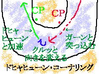 その『ドヒャヒューン・コーナリング』の内訳ですが、簡単に言えば「ブレーキングしながら直線的にコーナーに突っ込んで、鋭角にターンインし、直線的に立ち上がる」だけです。