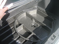トランクフロアの下にはウレタン製のトレーがあります。 トレーの中央にはスクリューがあり、これを回してトレーを外す事が出来ます。 |