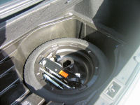 トレーを外すと、そこに応急タイヤと工具類があります。 |